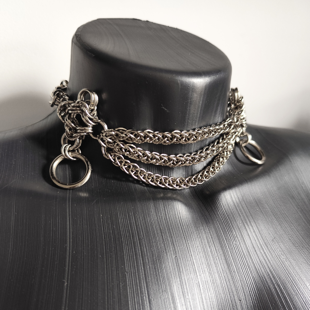 Corrente feita de argolas de níquel com acabamento em verniz super resistente.